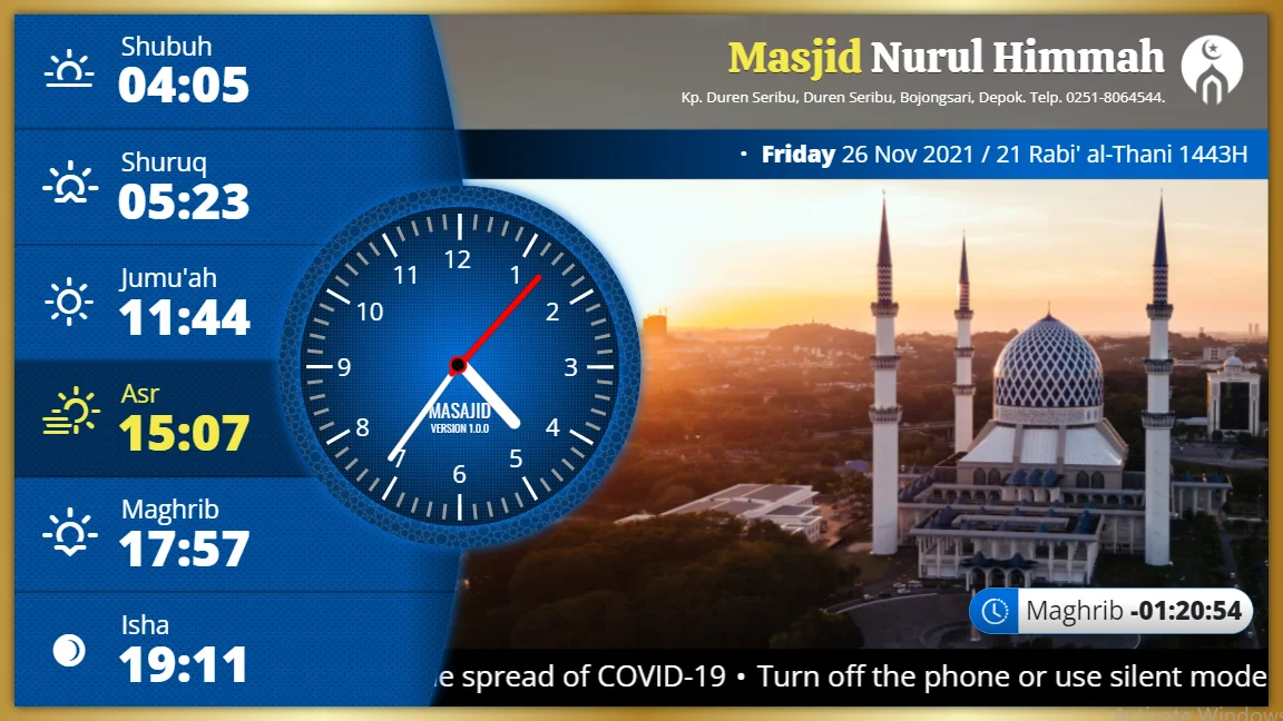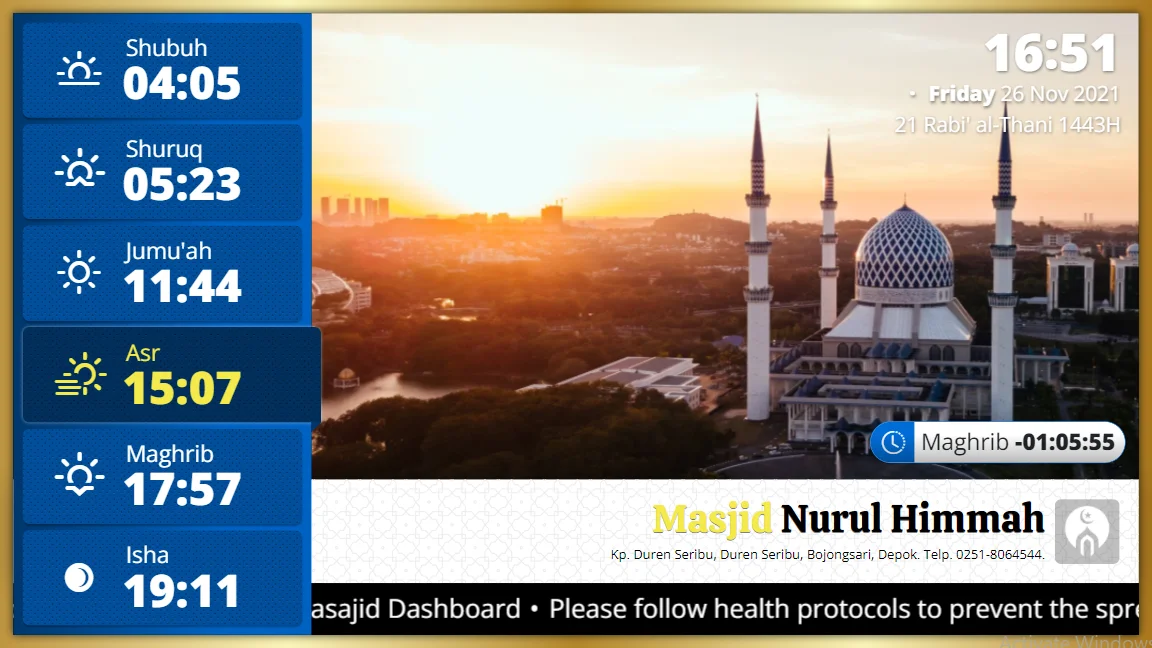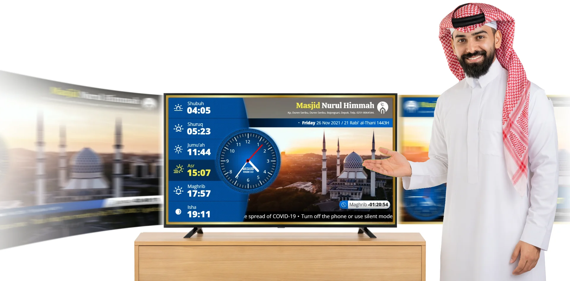 Each element of Masajid screen is specially designed to aim clear readibility for each element so it would be easy to see from afar.