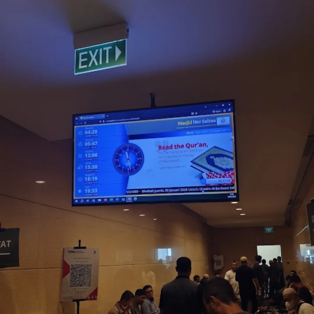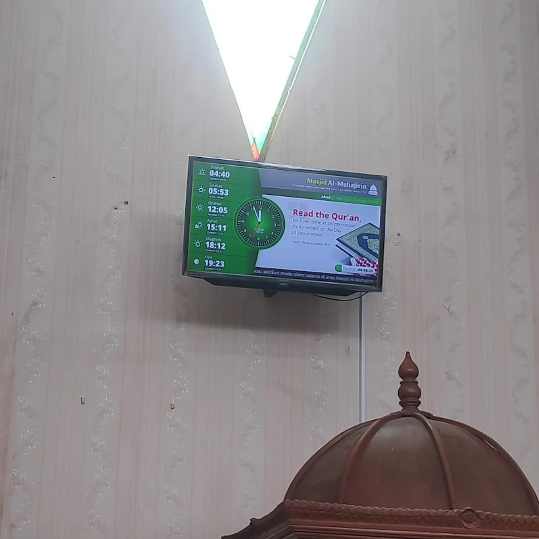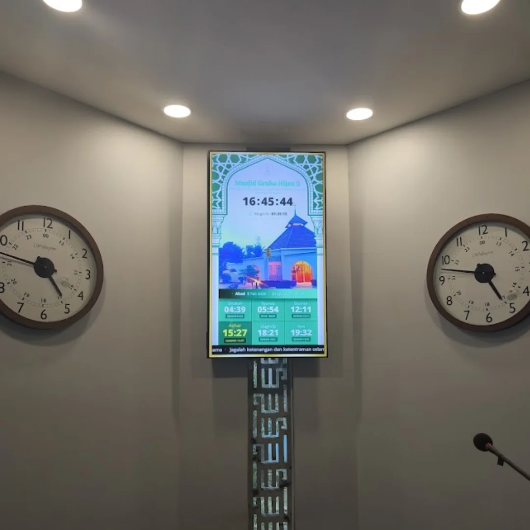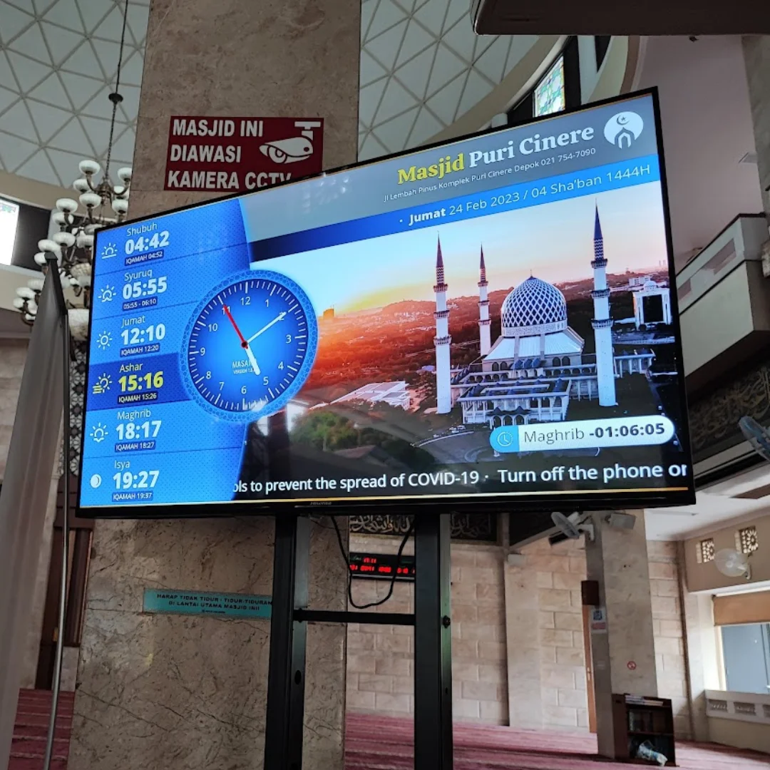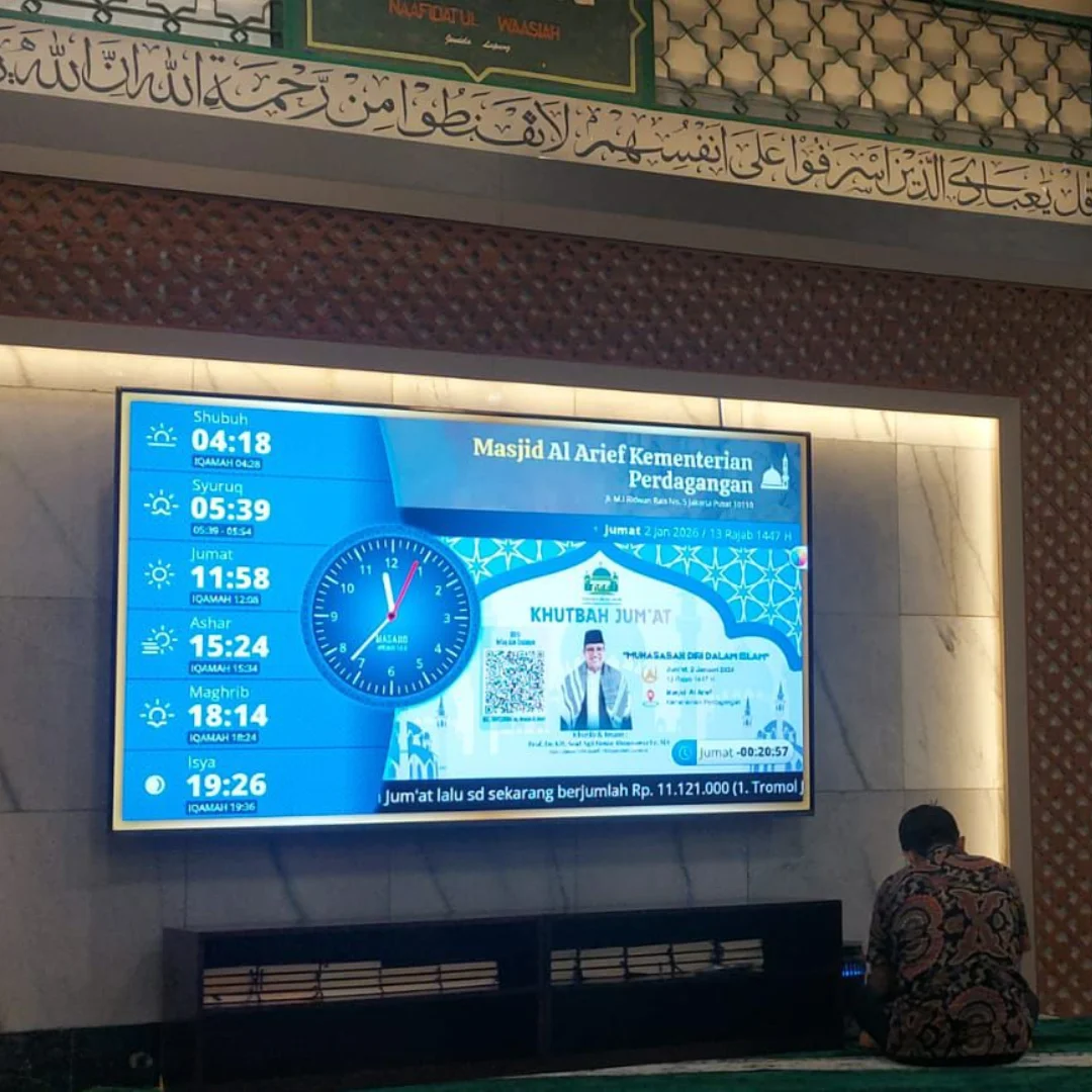 Many mosques used to use LED prayer clocks, but many are now switching to digital prayer time displays on TV screens. These modern systems can show prayer schedules, announcements, Islamic events, and iqamah countdown in a more flexible and interactive way.