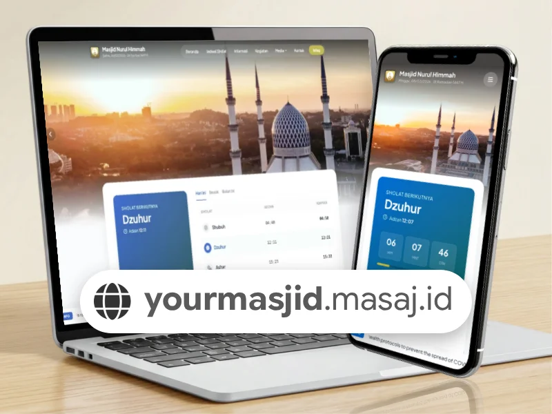A dedicated website for your masjid to share prayer times, announcements, and community information, automatically synced with your Masajid Screen.